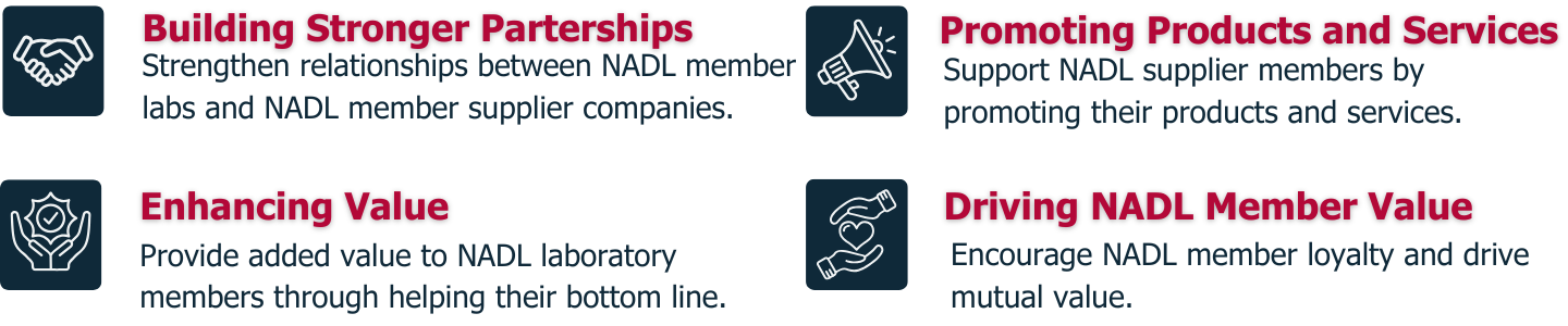 Program OverviewThe NADL Member Advantage Program is designed to foster stronger connections within the NADL community by encouraging NADL laboratory members to purchase products and services from NADL supplier members. In return, participating NADL supplier members will offer exclusive discounts or special offers to fellow NADL Members.Program Goals:The NADL Member Advantage Program is designed to enhance the overall value of NADL membership by facilitating stronger connections and meaningful partnerships between laboratory members and supplier members. How the NADL Member Advantage Program Works:The NADL Member Advantage Program connects NADL supplier and laboratory members through exclusive offers designed to add value and support business growth across the dental laboratory community. Participation is completely voluntary and free for both supplier and laboratory members. Why Participate?